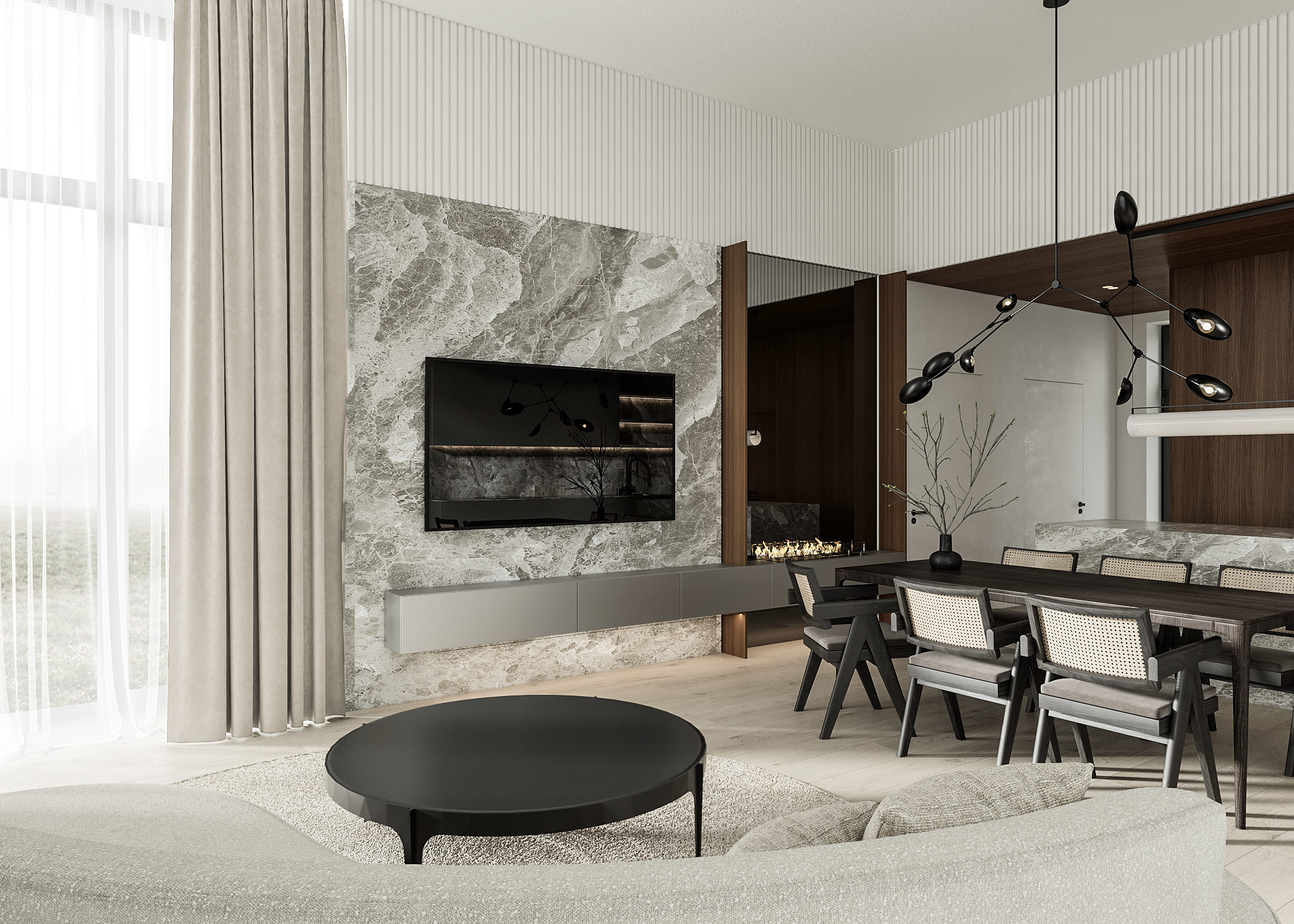 WOW, gražios vizualizacijos. Mes sužavėti. Nežinau kaip Jums pavyko mus taip greit "perkąsti", bet pirma reakcija, kad pataikėte super. Židinio sprendimas- nuostabus. Bendras vaizdas modernus ir jaukus. TV siena, nežinau iš ko padaryta, bet atrodo gerai. Sala su stalu- taip pat, manau, mūsų atveju geriausias sprendimas. Tambure pasigedau veidrodžio. Rytoj nuvažiuosime gyvai pažiūrėti riešutmedžio plokštės, kad įsitikintume, jog ji mums patinka ir tinka. Tai po savaitgalio galime susiskambinti, kada Jums patogu. Ačiū Jums labai! Gražaus savaitgalio!