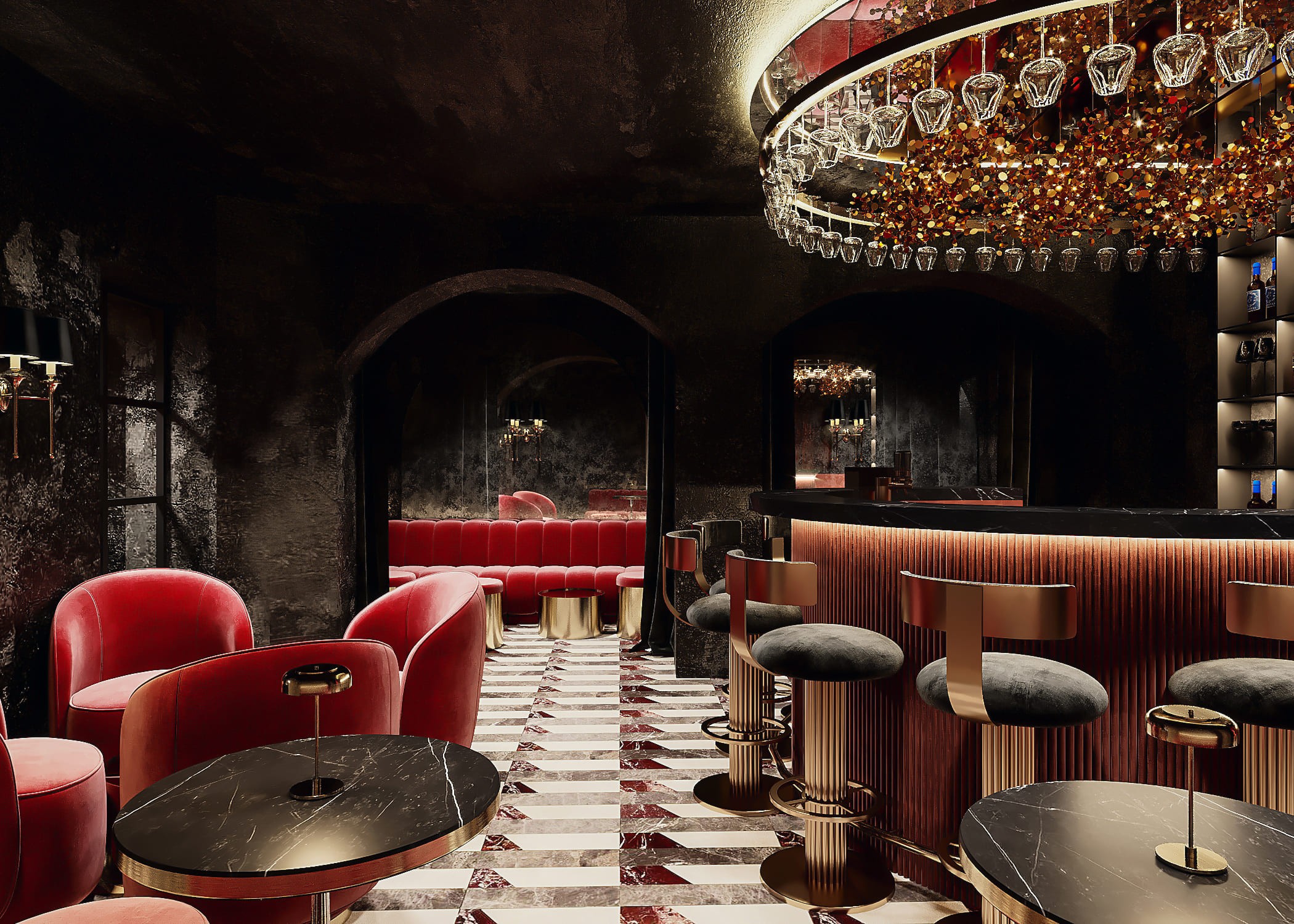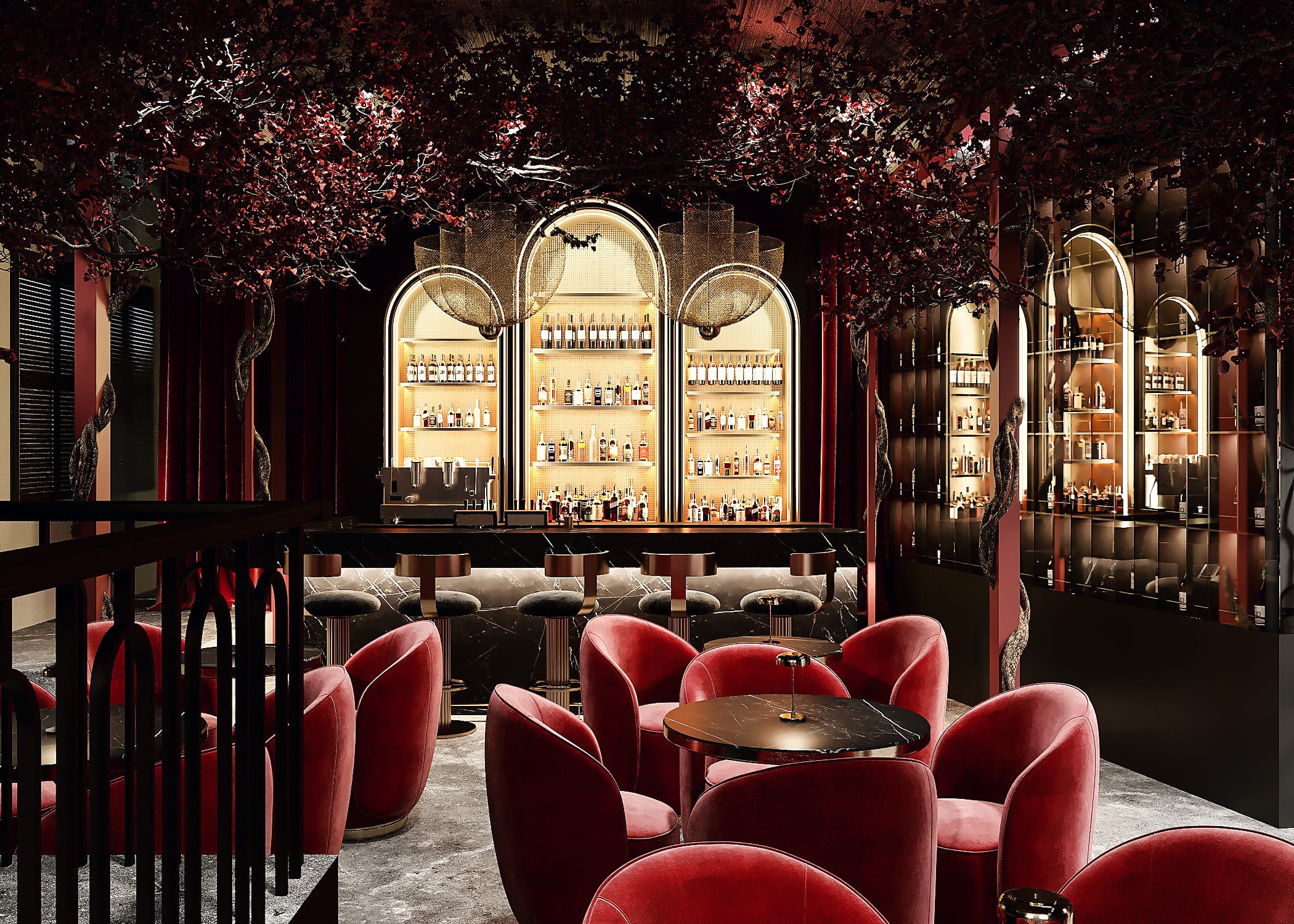 Atsinaujinose patalpose netgi dvi atskiros- lauko ir vidaus erdvės, turinčios galimybę priimti tiek mažesnes lankytojų grupes, tiek paskirti vakarą privačiai šventei. Bare išlieka raudonos spalvos motyvas, kuris atsikartoja tiek minkštųjų baldų audiniuose, tiek sunkiose teatrališko stiliaus užuolaidose ar vijoklinio stiliaus lauko erdvės stogo dekore. Kuriama pasakiška, romantiškai pritemdyta erdvė su eksponuojamais alkoholiniais gėrimais didelėse vitrinose bei naudojamomis kokybiškomis medžiagomis- tikra svajonių baro realizacija.